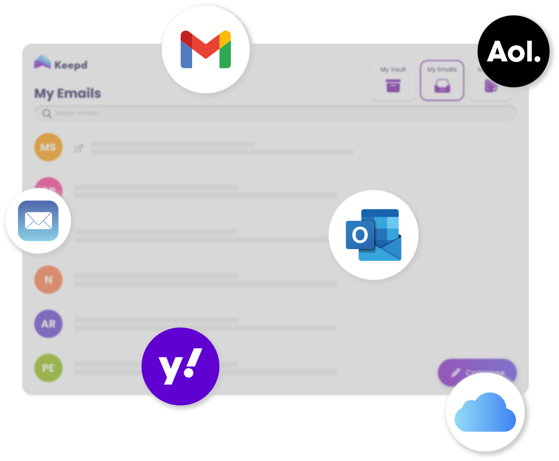 Nearly all personal email accounts can be linked to Keepd, including Gmail, Outlook and Yahoo.